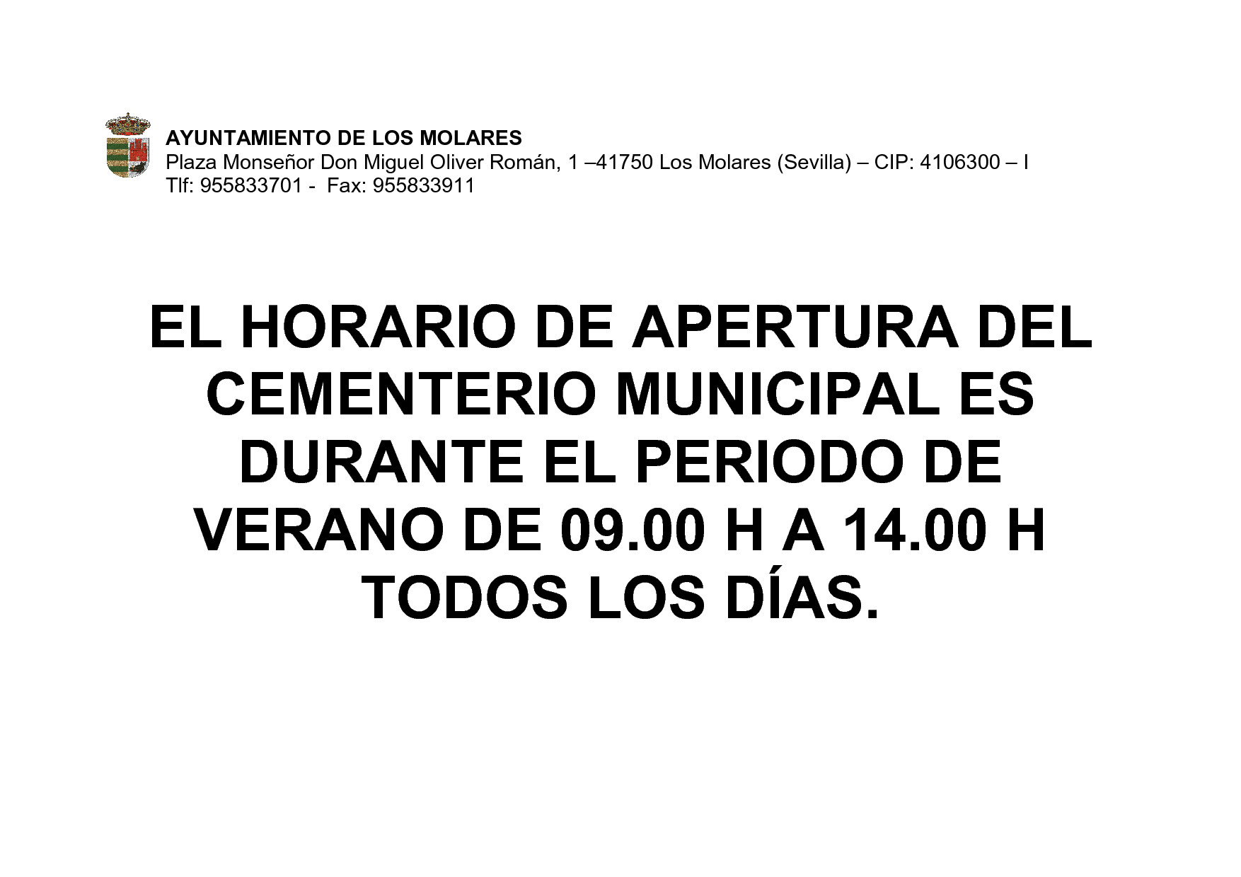 HORARIO DE VERANO DEL CEMENTERIO