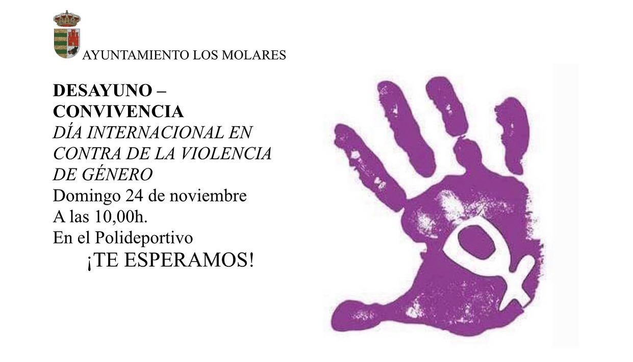 Este domingo 24 de noviembre tendremos un desayuno-convivencia por el Día Internacional contra la violencia de género.¡Te esperamos a las 10:00h en el polideportivo. !¿Te apuntas?