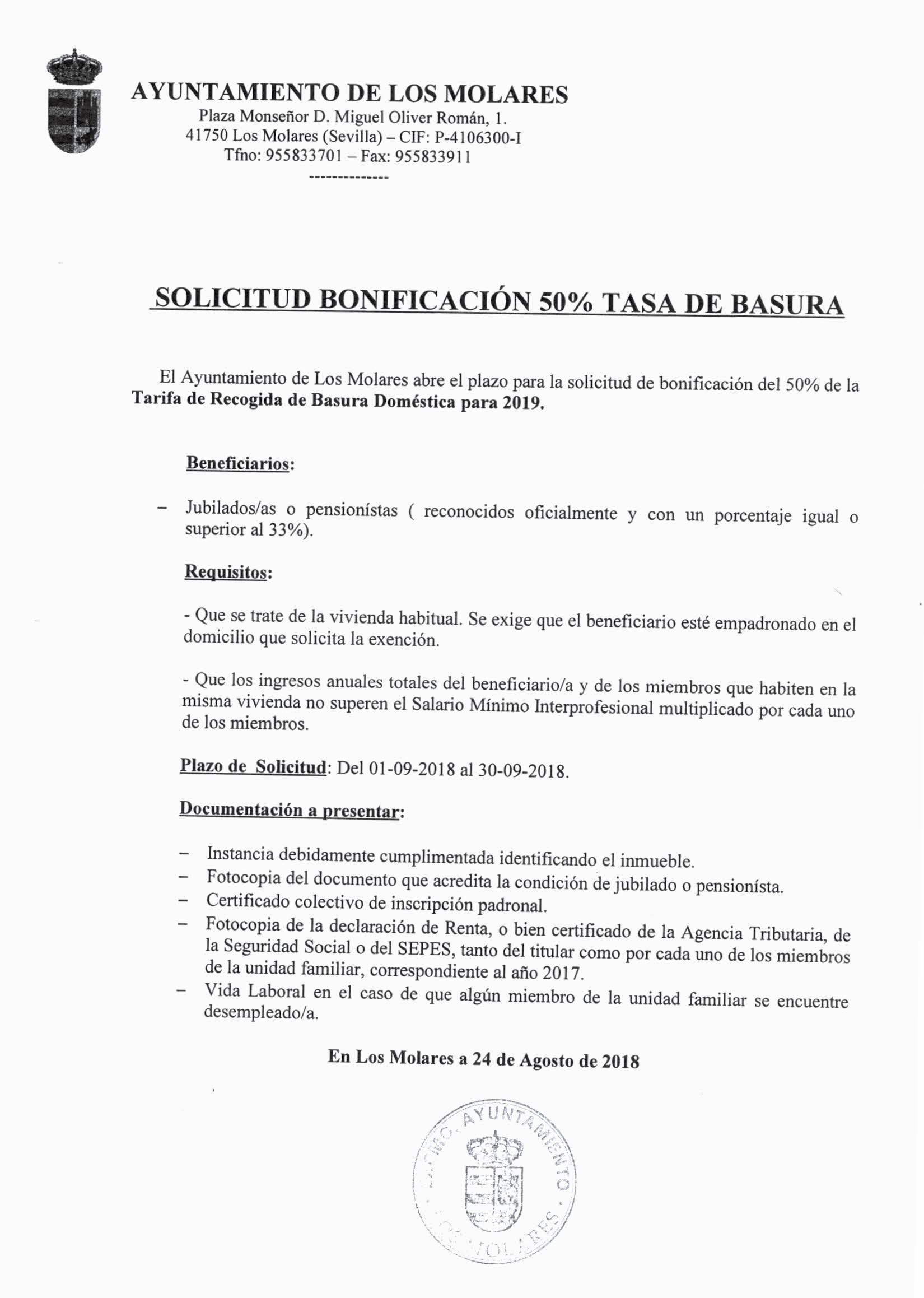 BONIFICACION 50% TASA DE BASURA