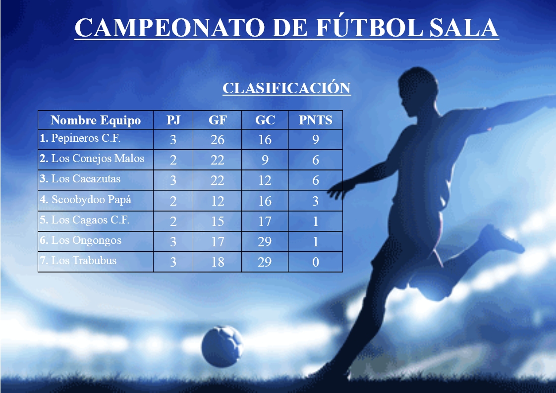 CAMPEONATO DE FÚTBOL SALA: Clasificación y Resultados