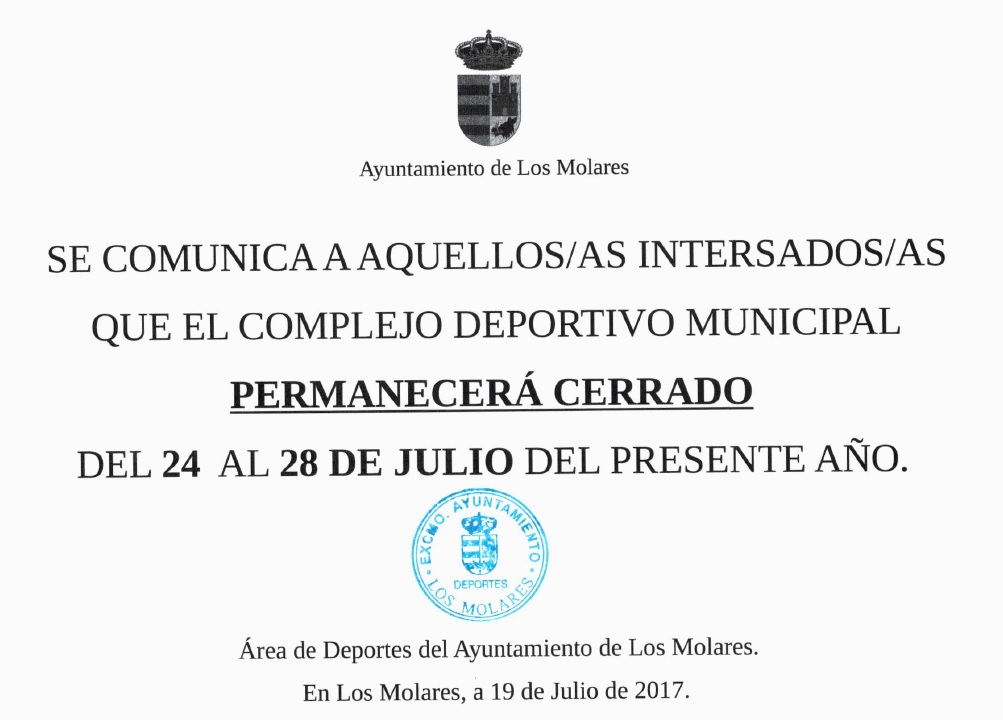 Cierre del Complejo Deportivo Municipal