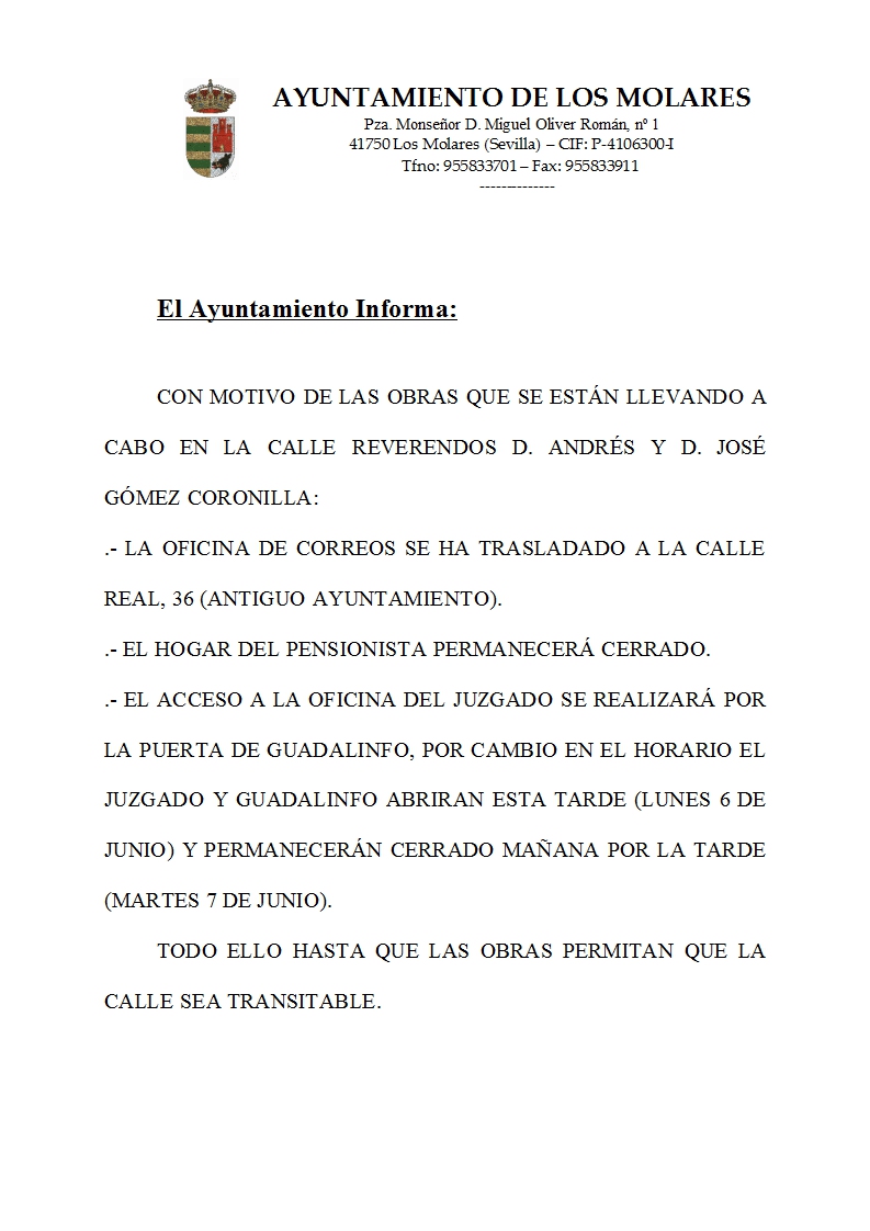 EL AYUNTAMIENTO INFORMA:
