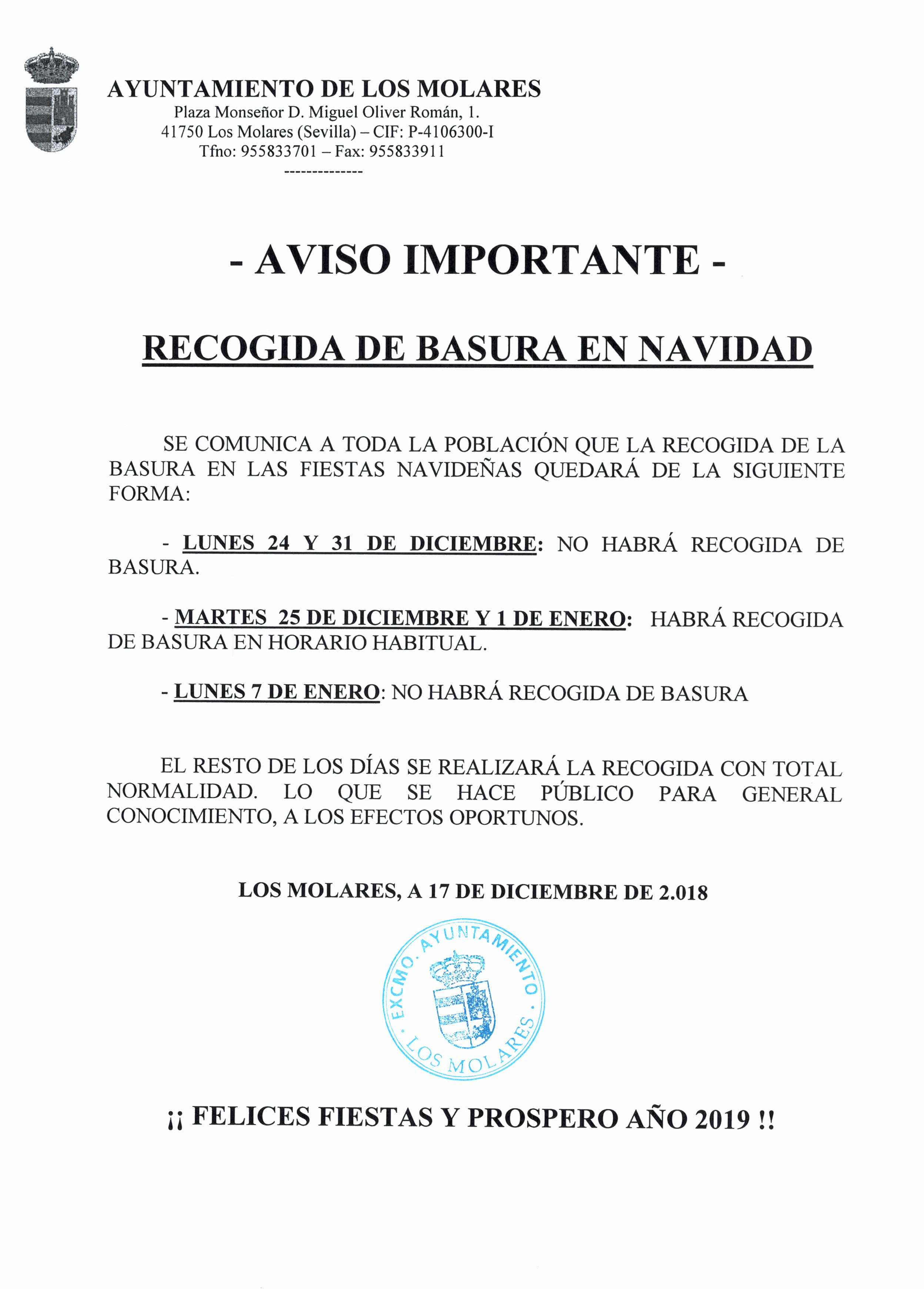 HORARIOS DE RECOGIDA DE BASURA EN NAVIDAD