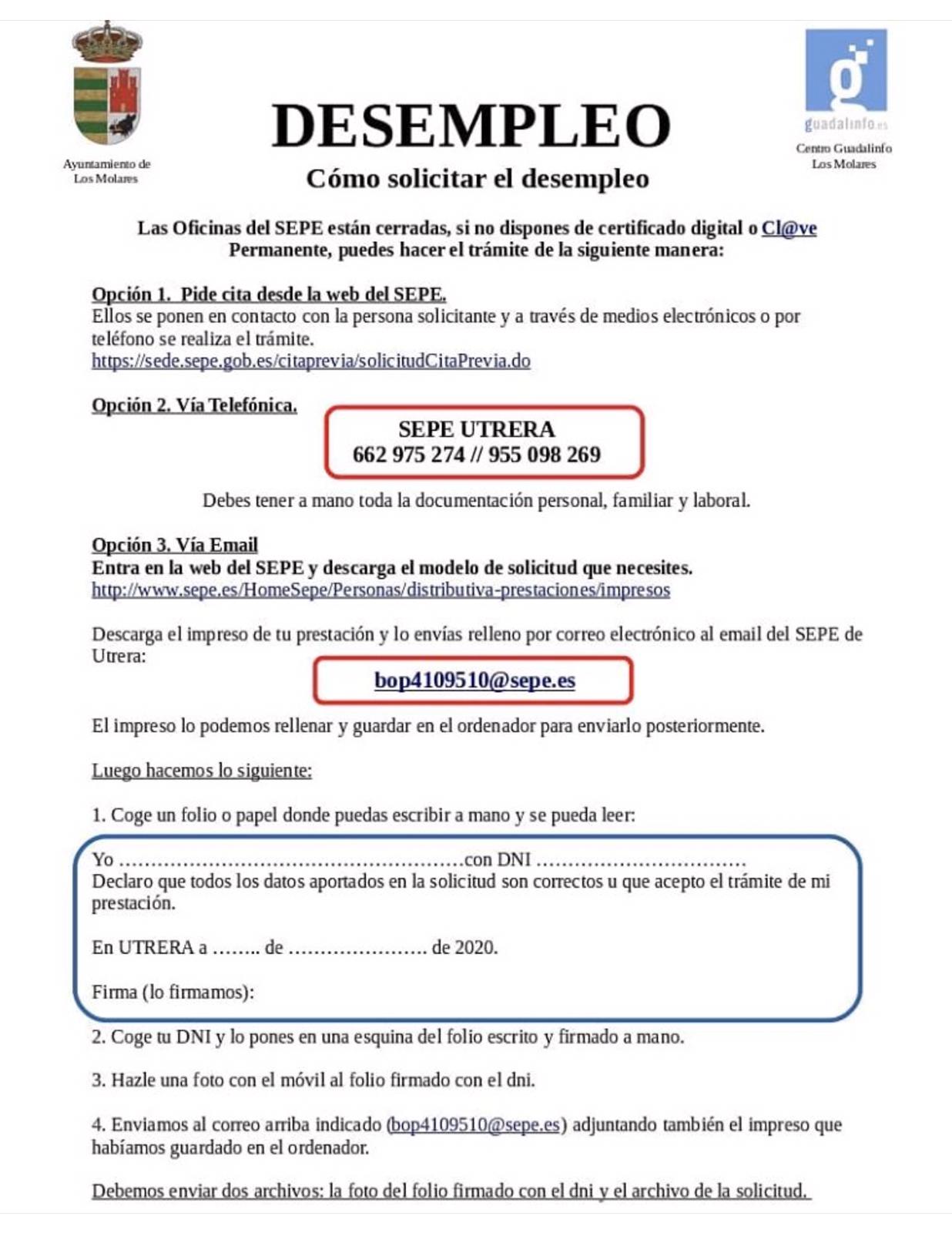 INFORMACIÓN DE INTERÉS: Solicitud de Desempleo