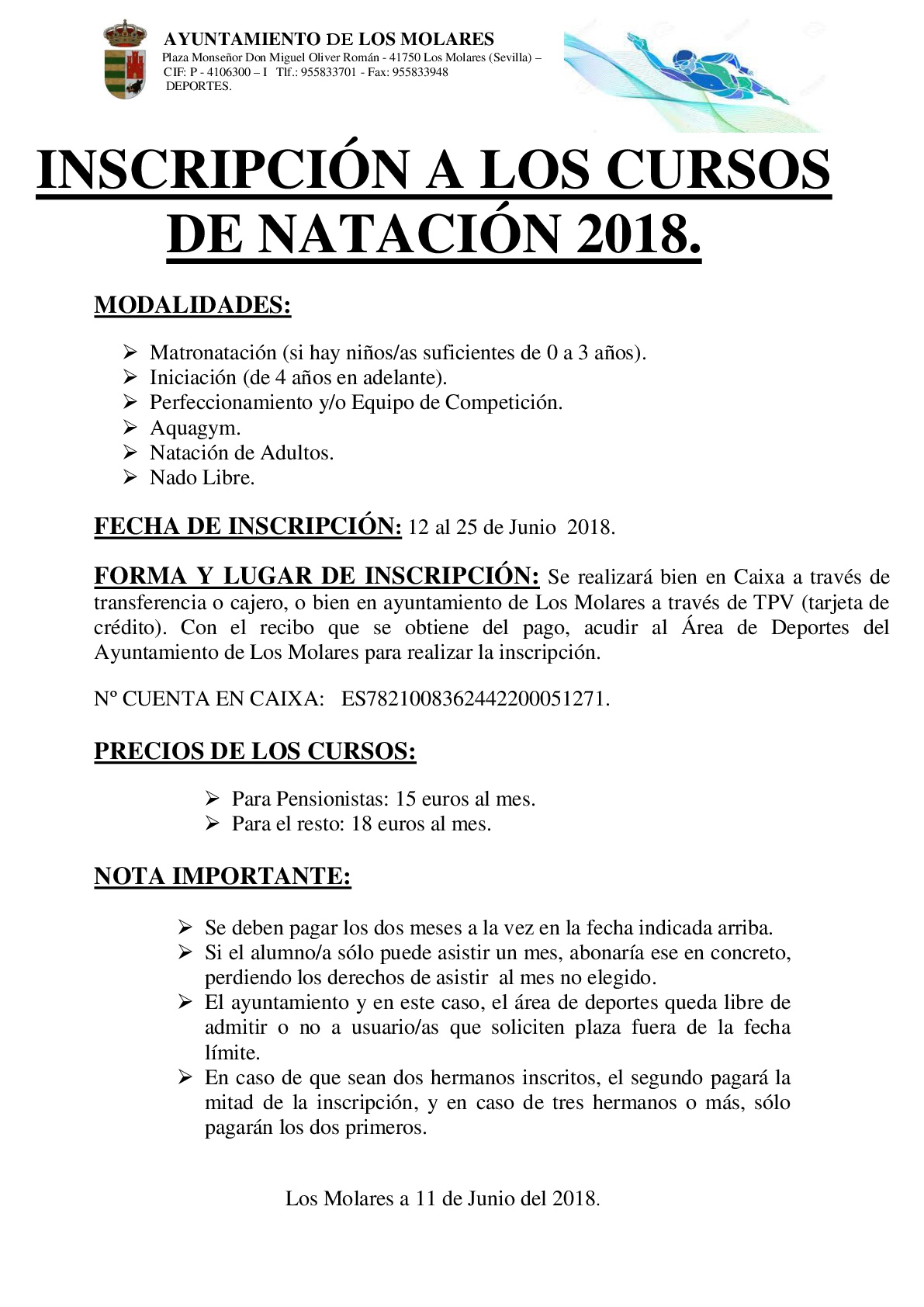 INSCRIPCION ESCUELAS DEPORTIVAS MUNICIPALES VERANO 2018