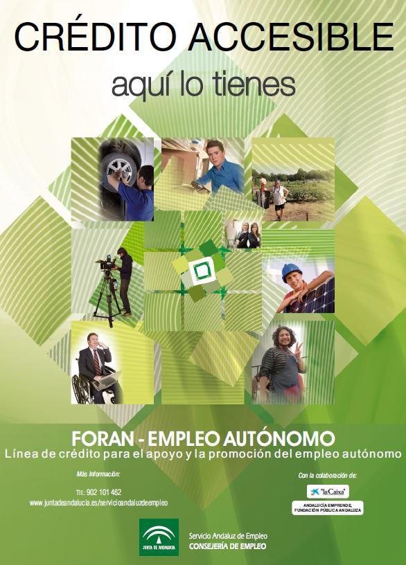 La Consejería de Empleo, a través del Servicio Andaluz de Empleo, pone a disposición del empleo autónomo una línea de crédito para su apoyo y promoción.