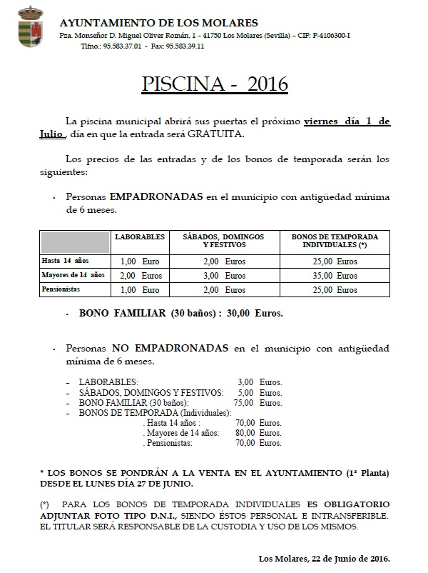 PISCINA MUNICIPAL 2016