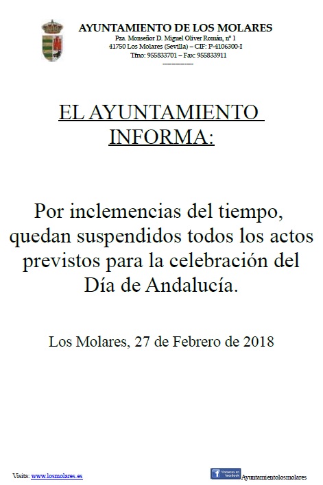 Suspendidos los actos organizados para la celebración del Día de Andalucía