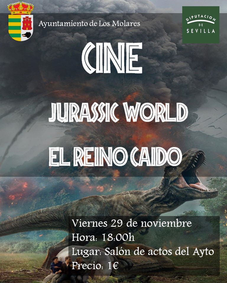 Este viernes 29 de noviembre a las 18:00h tendremos una cita con el séptimo arte.Por solo 1€ disfrutaremos de Jurassic World,el reino caído!Os esperamos!¿Te apuntas?