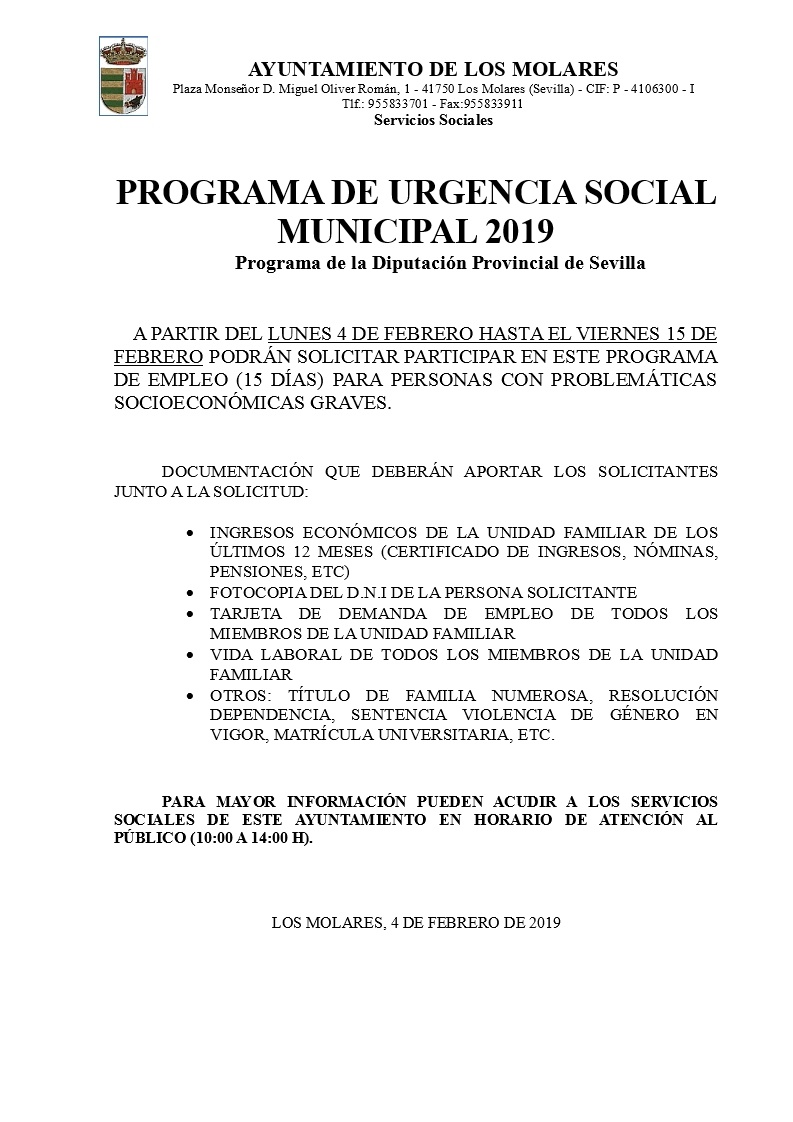 PLAZO: DEL 23 DE ENERO AL 5 DE FEBRERO DE 2019