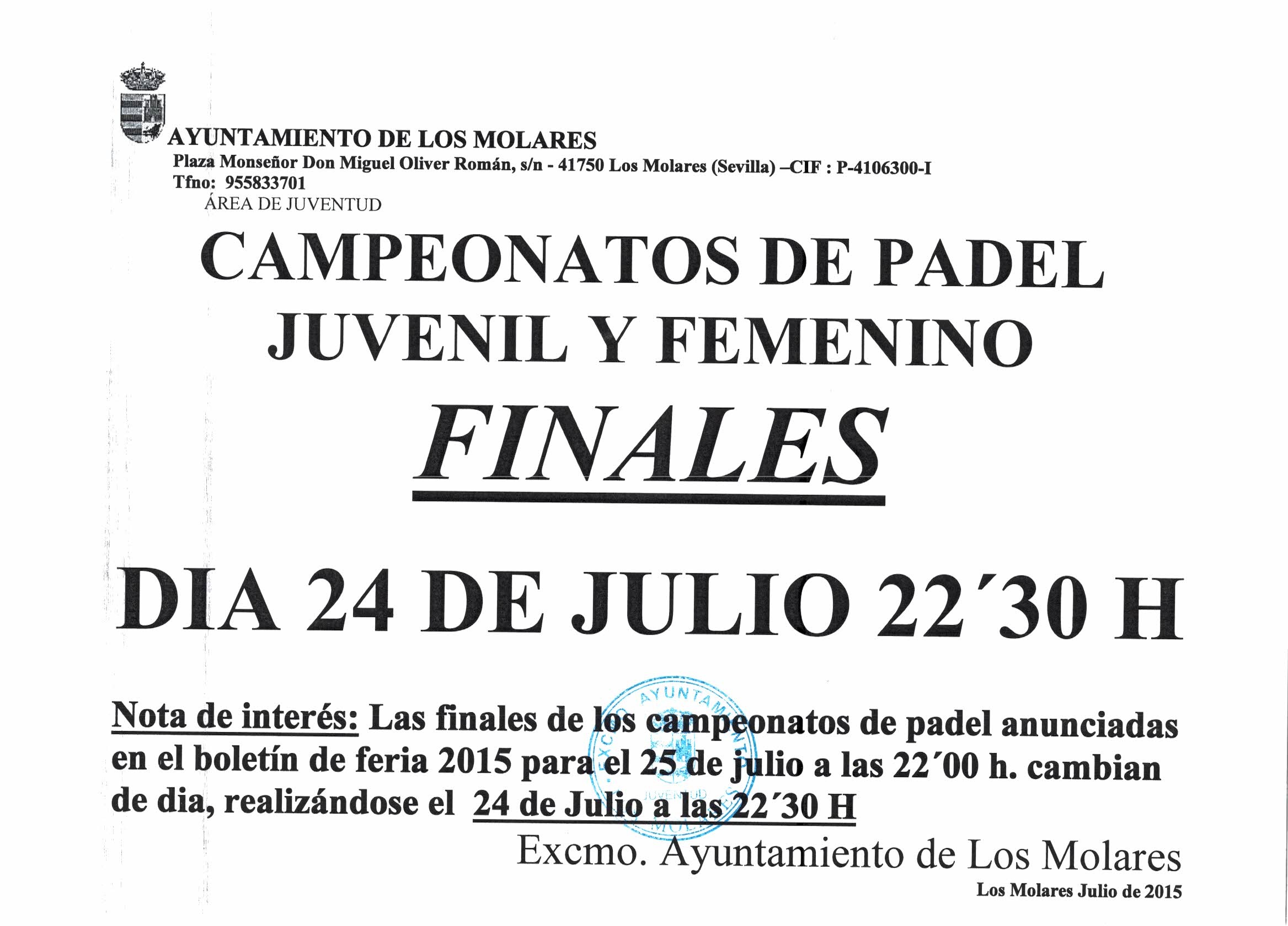 HORARIO PISTAS DE PADEL DURANTE LA FERIA